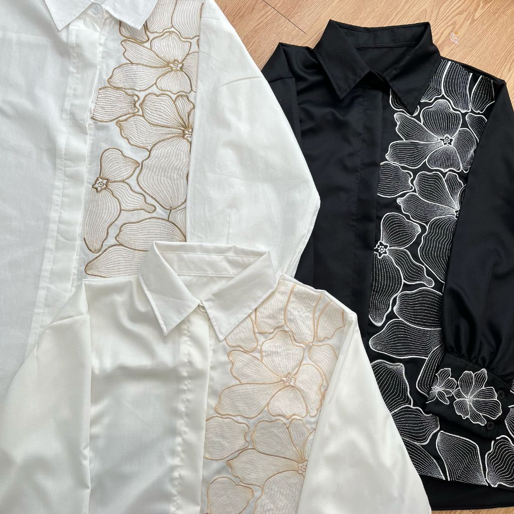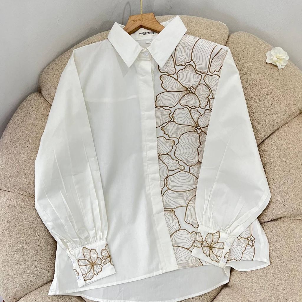 Atasan Kemeja Wanita Kekinian Aesthetic Bunga-Bunga