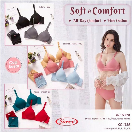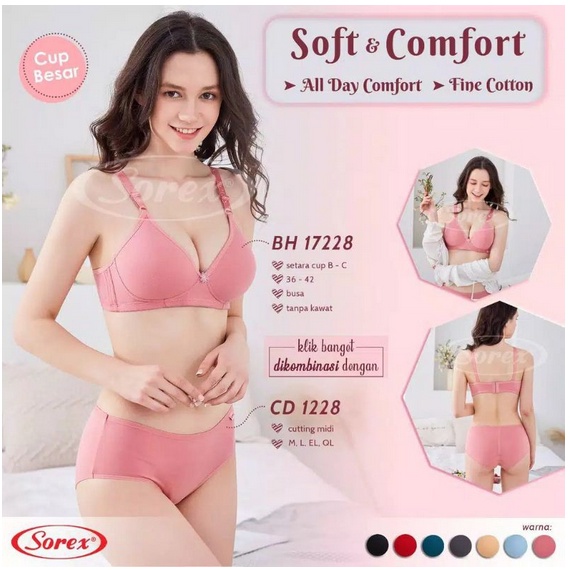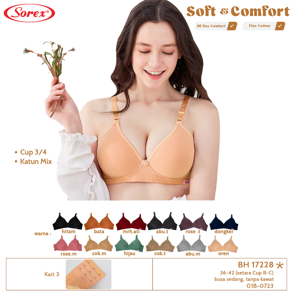 Sorex 17228 Bra BH Wanita Tanpa Kawat Soft & Comfort Cup B - C Besar Kait 3