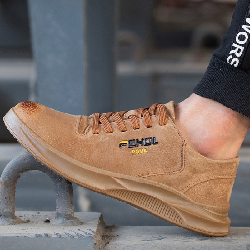 Kulit Asli Sepatu Safety Boots Pria Cowok Original Touring Safety Shoes Tracking Ujung Besi Kerja Proyek Olahraga Pendek