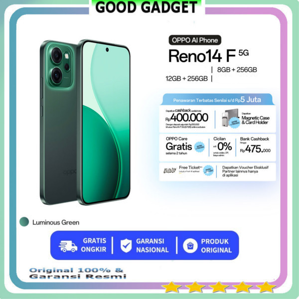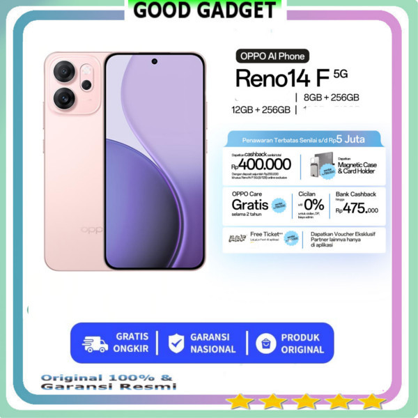 OPPO Reno14 F 5G 12/512GB , 8/256GB , Snap 6th 4nm - 50MP -6K mAh,120HZ , Original Resmi