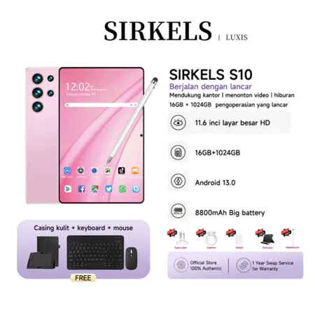 [Mall] TABLET PC SIRKELS S10 RAM 16GB + 1024GB ROM (FREE KEYBOARD+MOUSE+CASE) 5G DUAL SIM WIFI TERLARIS GRATIS ONGKIR
