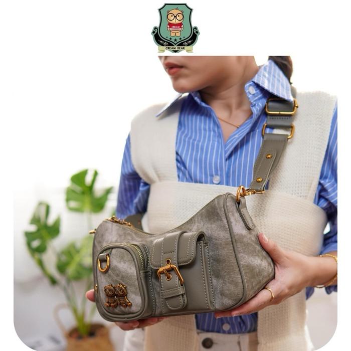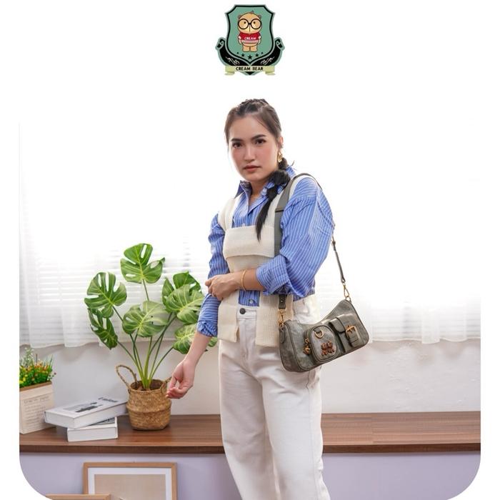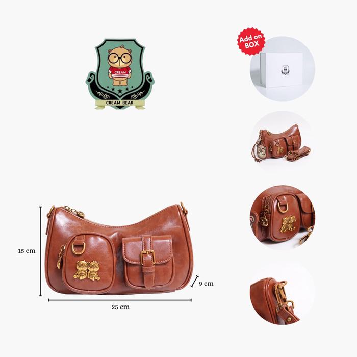 Sammao Creambear Tas Selempang Tas Bahu Canvas Kulit Wanita Original C13032-C13382