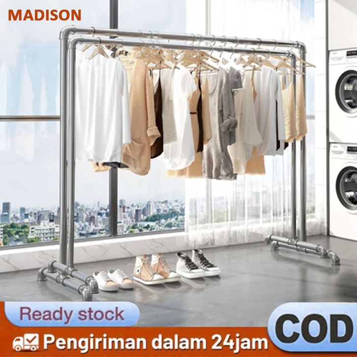 TERBARU 200CM Jemuran Baju Tabung Besi Stainless Rak Gantungan Baju Anti Angin Minimalis Jemuran Pakaian Portable