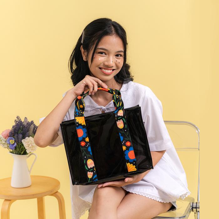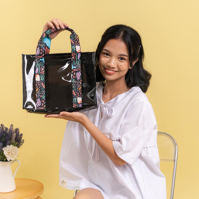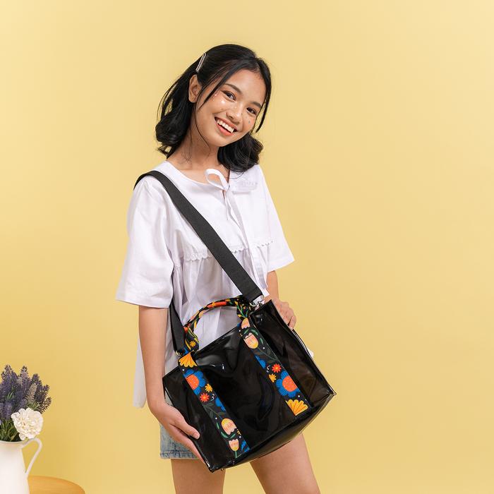 TAS SELEMPANG WANITSA SOVLO MEDIUM CLEO BAHAN PVC TRANSPARAN HITAM