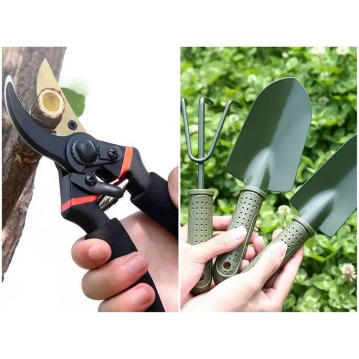 TERBARU Paket Hemat 2in1 Gunting Ranting Dahan SK5 & Garden Tools Set 3 Pcs Hijau / Pruning Shears / Sekop efifd