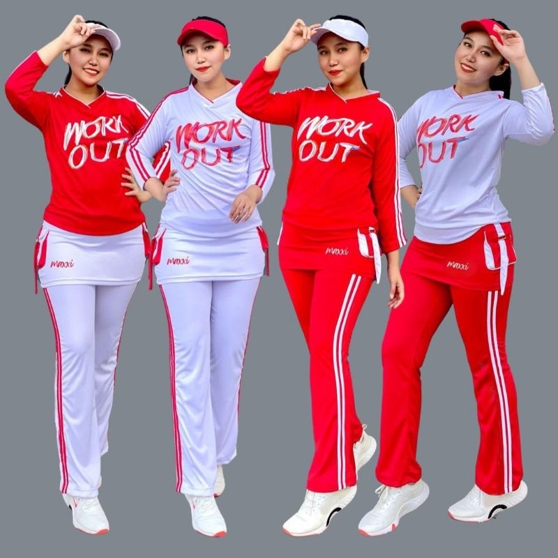 Baju Senam Wanita Terbaru Stelan Baju Senam Workout Rok Series Indoor Outdoor Merah Putih Agustusan