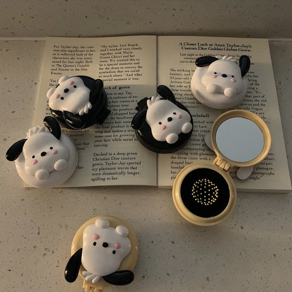 [HARU] Pochacco Travel Friendly Foldable Comb with Mirror Sisir Lipat Cermin Bulat Sisir Rambut Mini Hair Brush