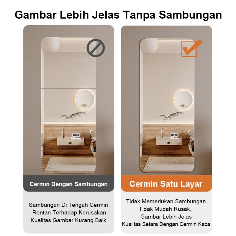 Cermin Dinding Tempel Cermin Stiker Tempel Dinding Ukuran 40160Cm Acrylic Mirror