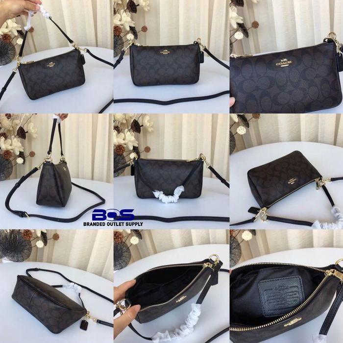 TAS SELEMPANG 58321 TOP HANDLE POUCH SIGNATURE CANVAS BROWN BLACK ORIGINAL TERBARU