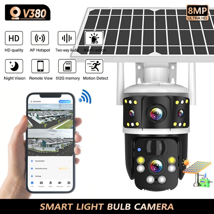 V380 Pro Tenaga Surya Solar Dual Lens Camera HD Outdoor Tahan Air CCTV Audio Dua Arah Motion Track Do2