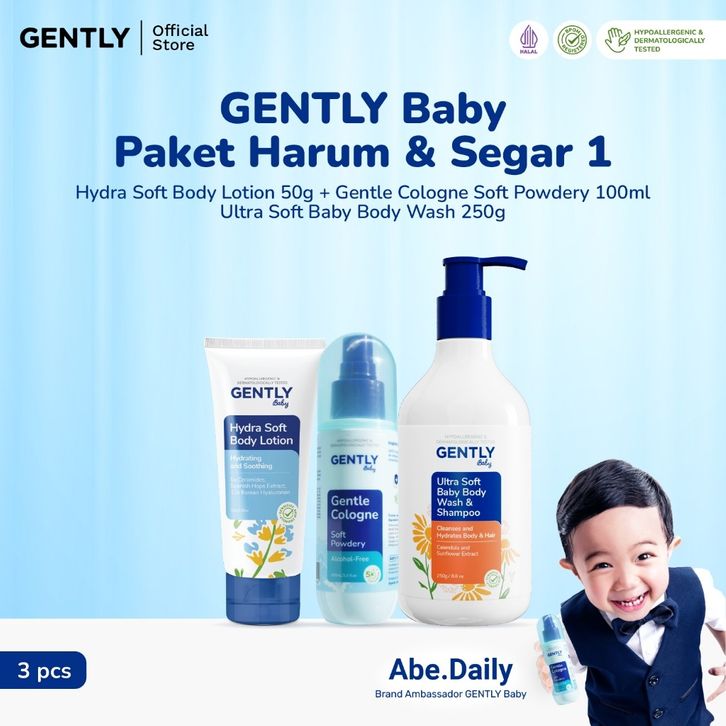 GENTLY Baby Paket Harum & Segar | Paket Hydra Soft Body Lotion 50 g Moisturizer Bayi dan Anak + Gentle Cologne 100 ml Pa
