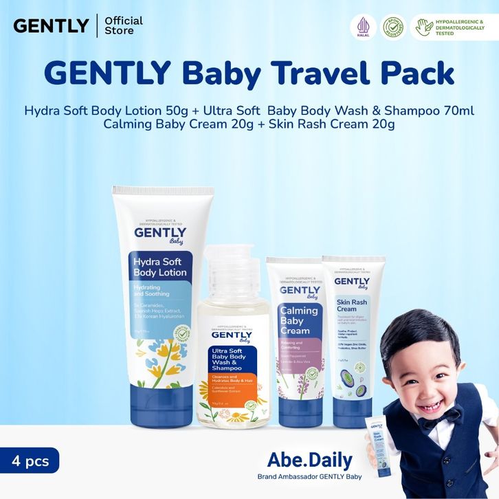 GENTLY Baby Travel Pack | Paket Spesial Liburan | Calming Baby Cream 20 g + Ultra Soft Body Wash & Shampoo 70 g Non SLS/