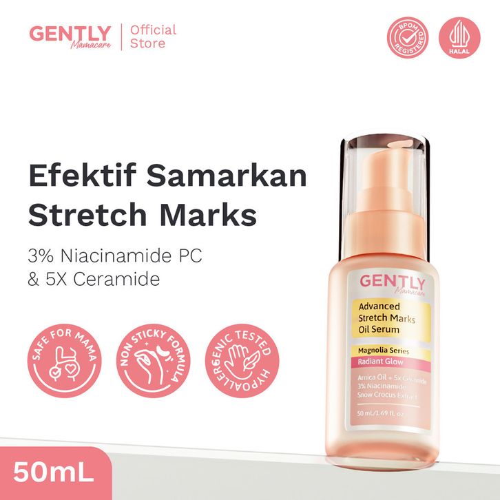 GENTLY Mamacare Advanced Stretch Marks Oil Serum | Arnica Oil + 5x Ceramide + Magnolia Extract + 3% Niacinamide Snow Cro