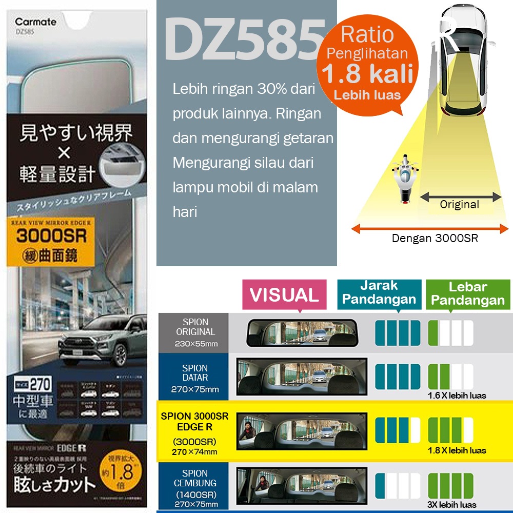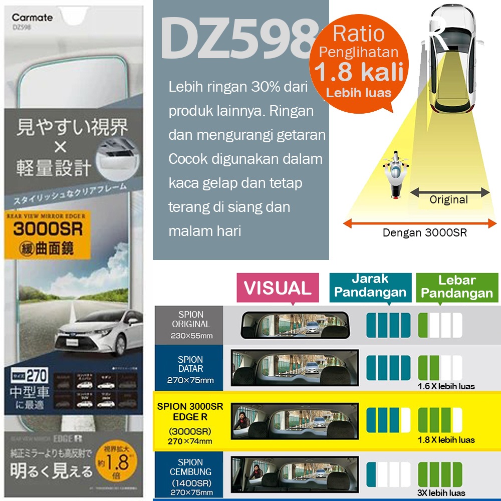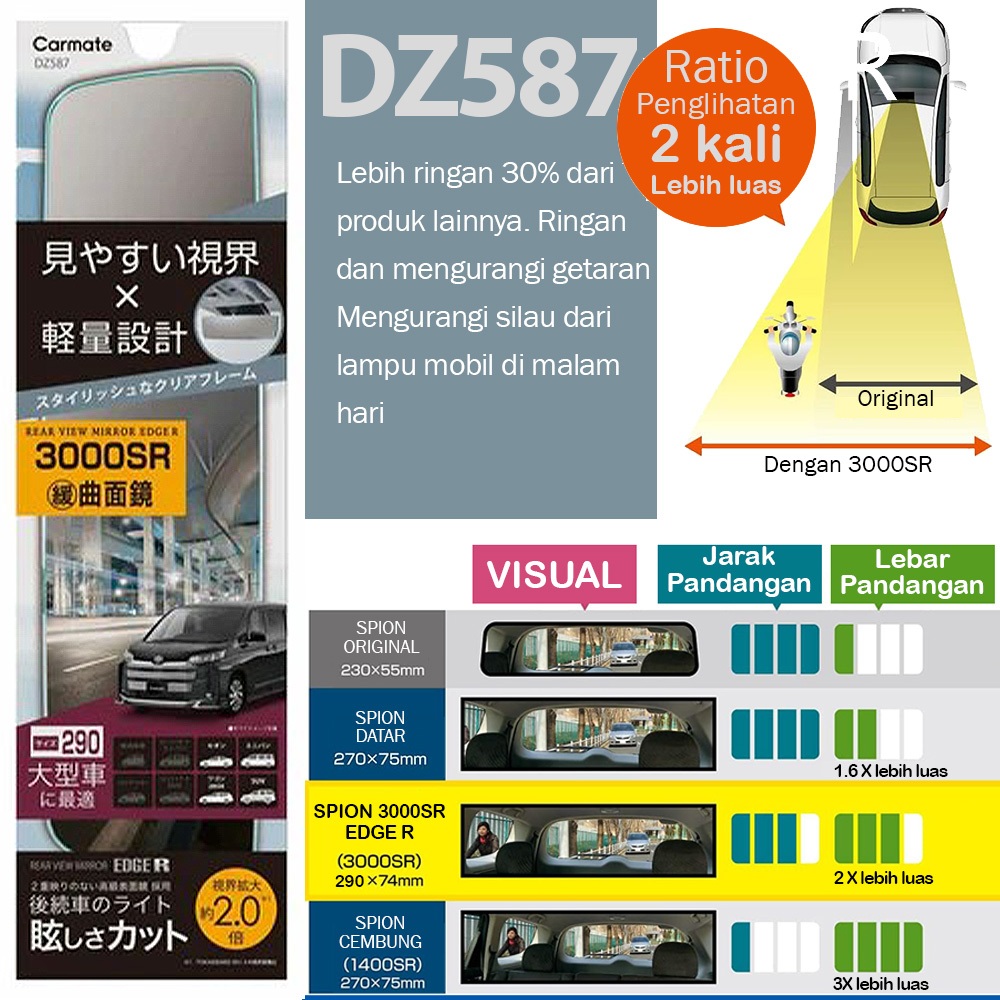 Kaca Spion Dalam Mobil CARMATE 3000SR EDGE R Room Mirror