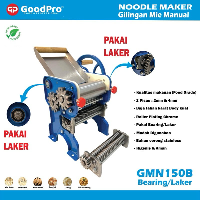 Gilingan Mie Manual + Laker / Bearing Mesin Cetak Mie Cireng Pangsit Molen Penggiling Mie Goodpro Gmn150B Stainless