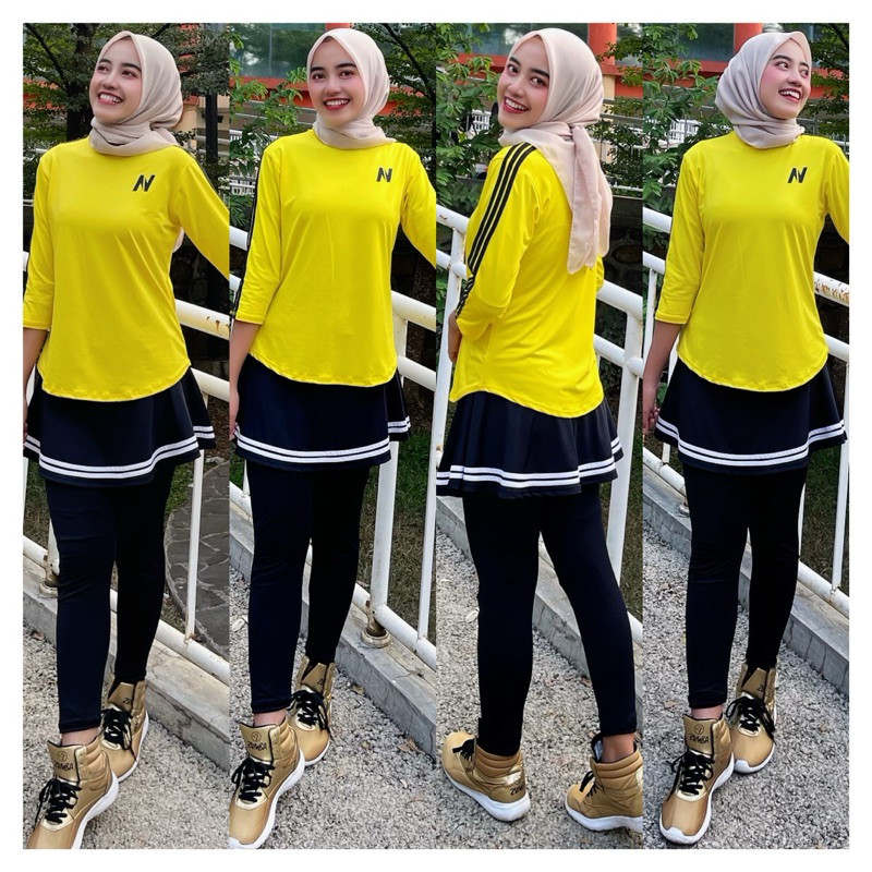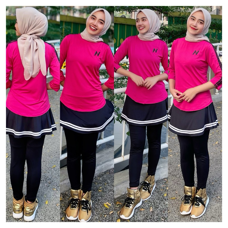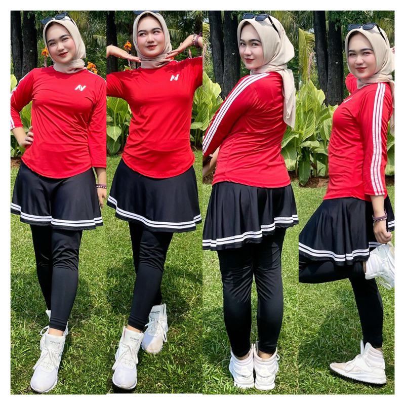 Setelan Baju Olahraga Wanita Baju Senam Aerobic Zumba Wanita Muslim Terbaru Legging Rok Olahraga Allsize Jumbo