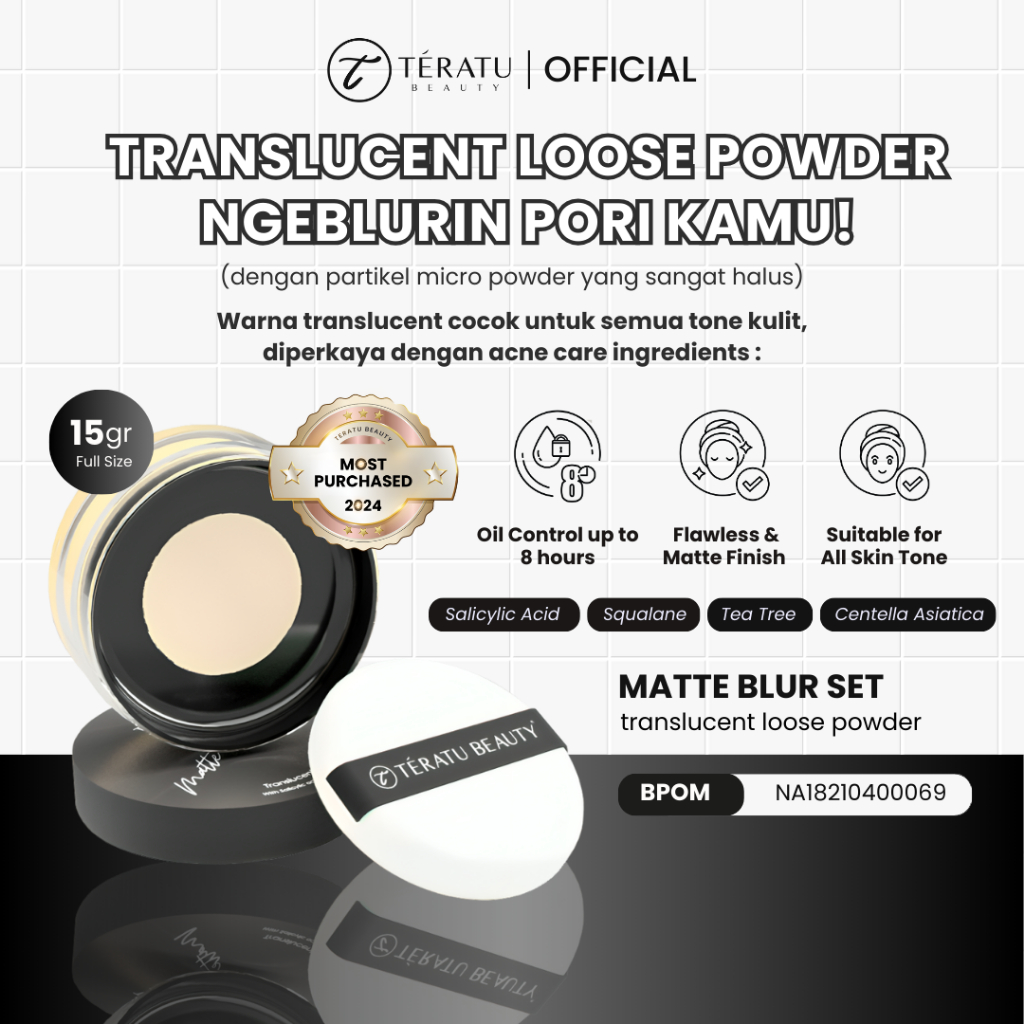 [HIGH DEMAND] TERATU BEAUTY 15 gr Matte Blur Set Oil Control Translucent Loose Powder with Salicylic Acid, Centella Asiatica, Tea tree