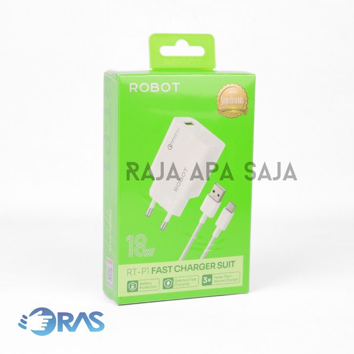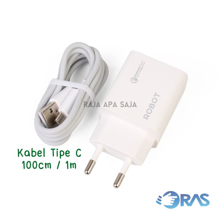 Charger Robot Type C 3A 18 Watt Fast Charging Qualcomm Quick Charge Casan Tipe C Tepsi Taepsi Carger Android RT-P1