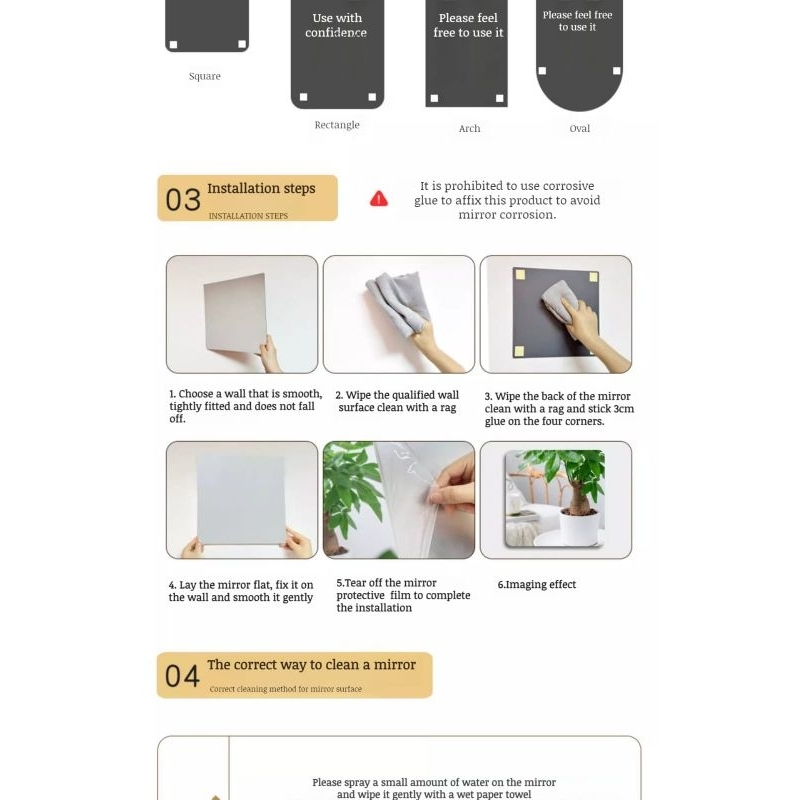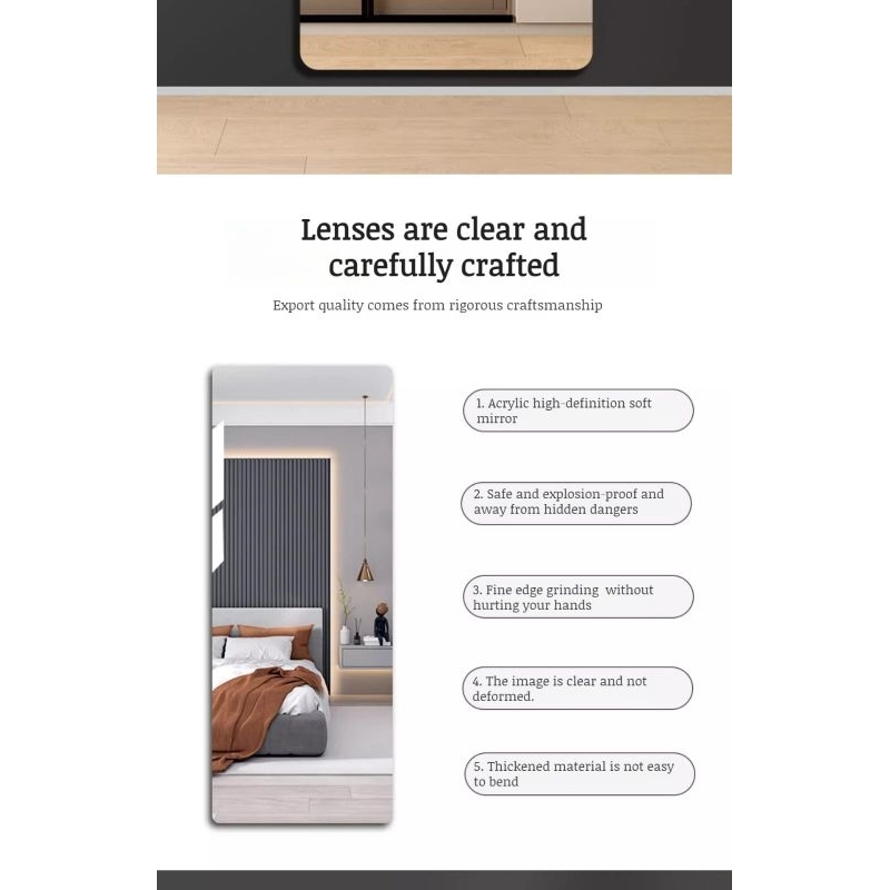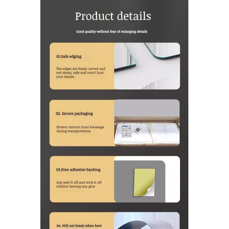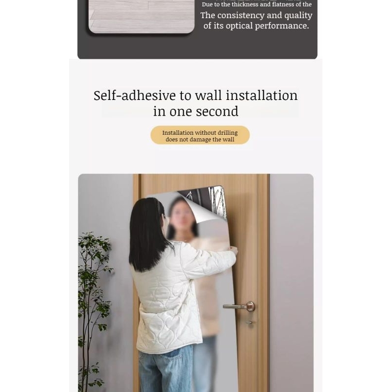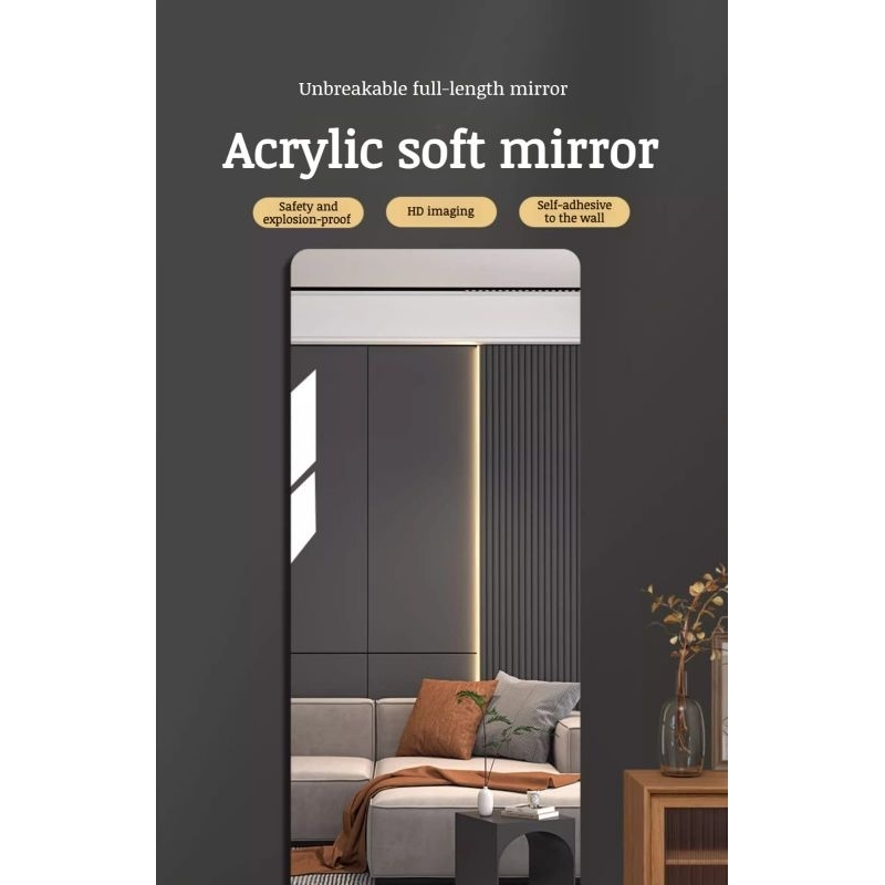 Stiker Kaca Cermin Akrilik Tempel Dinding Retangle Mirror
