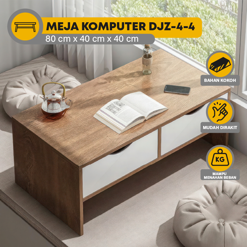 furnitureworldhome Meja Tamu Minimalis 2 Laci Warna Serat Kombinasi Putih Modern Kaki Kayu Meja TV