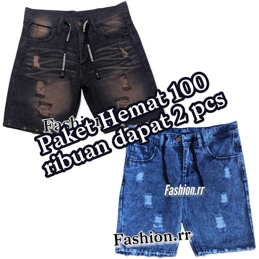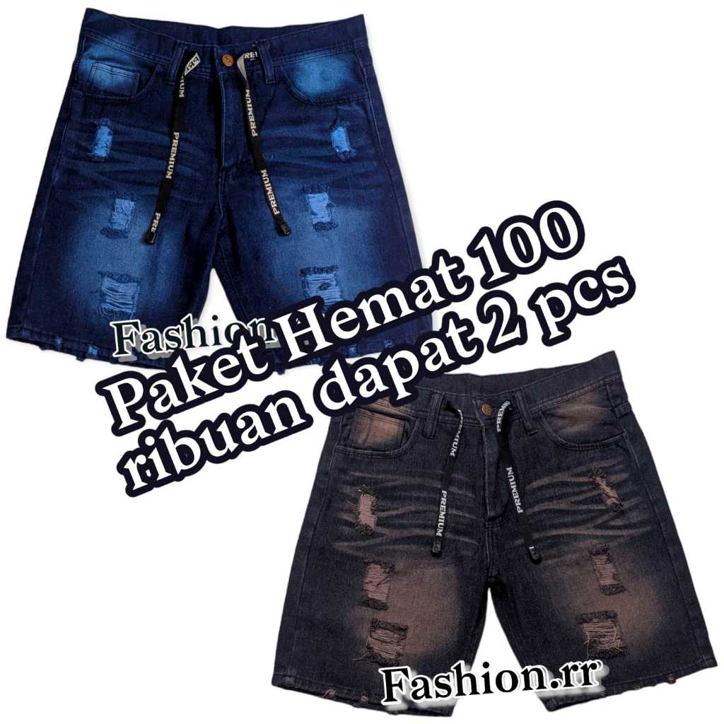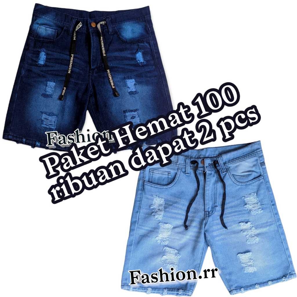 Paket Hemat 100 ribuan dapat 2 pcs celana jeans pendek sobek tembus pria dewasa dan remaja standar dan jumbo