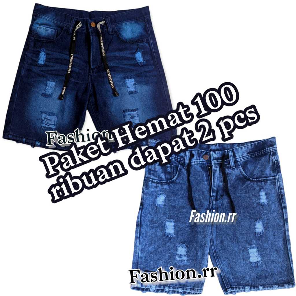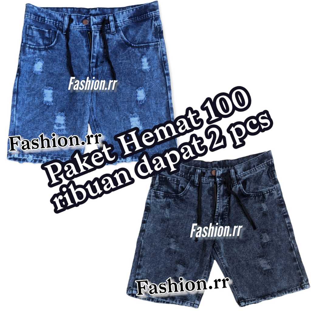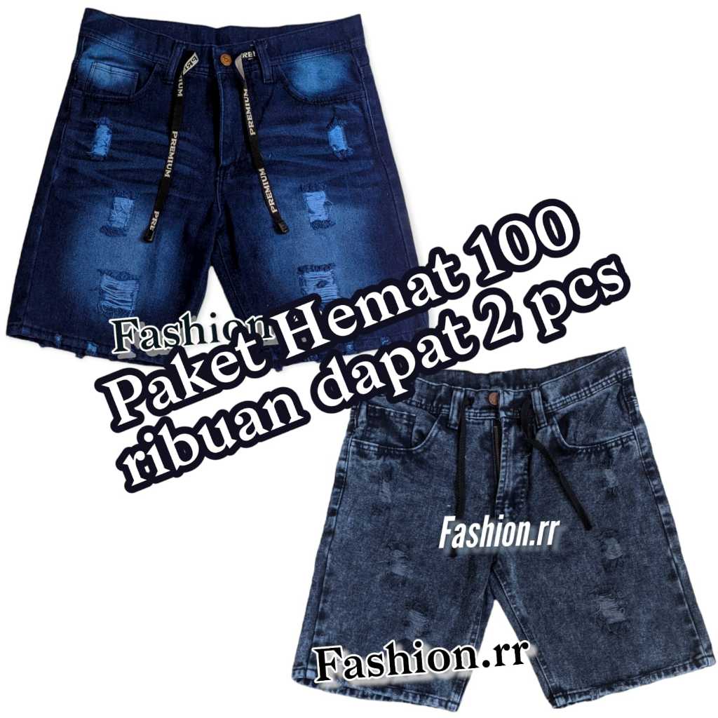 Paket Hemat 100 ribuan dapat 2 pcs celana jeans pendek sobek tembus pria dewasa dan remaja standar dan jumbo