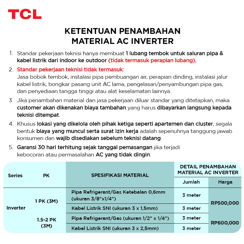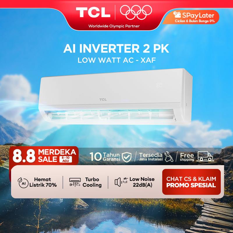 TCL AC INVERTER 2PK - TERSEDIA Pkuning mengkilapANGAN - AI TECH HEMAT LISTRIK 70 PERSEN - ANTI BISING - CEPAT DINGIN - TURBO C