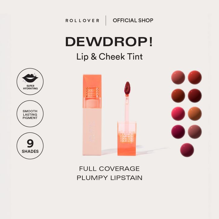Skintint Rollover Reaction - DEWDROP 12hr+ Hydrating Long Lasting 2 in 1 Liptint for Lips and Cheek