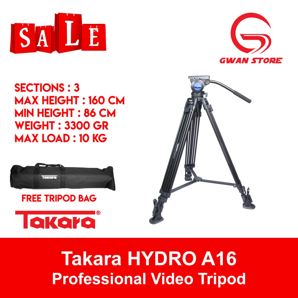 Takara HYDRO A16 Professional Video Tri with Fluid Head & Horse Shoe Mat