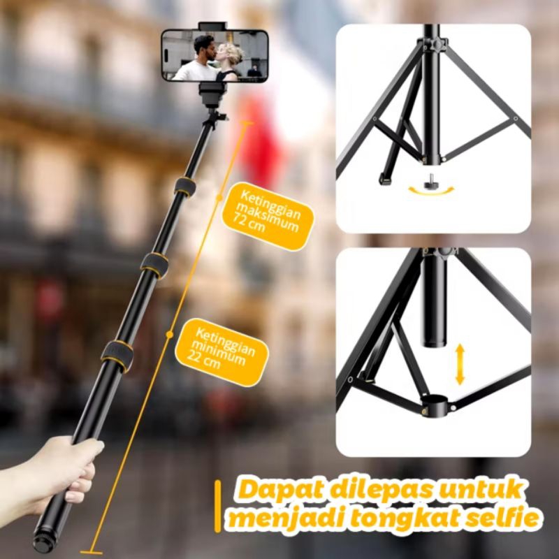 TRI HANDPHONE 2.1METER HOLDER HP ROTASI/TRI RINGLIGHT TRI CAMERA LAMPU LIVE VLOG PHOTOGRAPHY MAKE UP