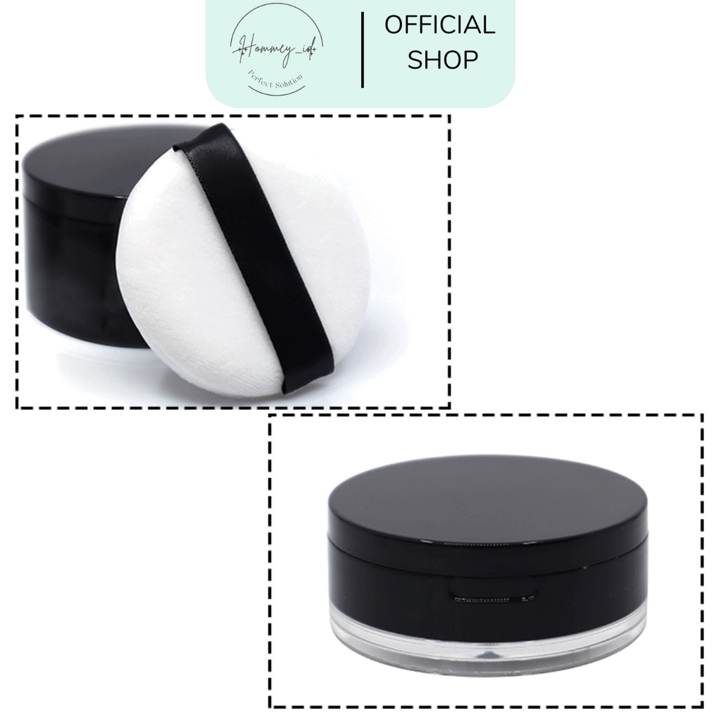 Hommey Id - Tempat Bedak Tabur Dengan Cermin | Tempat Loose Powder Free Sponge | Wadah Bedak Travel