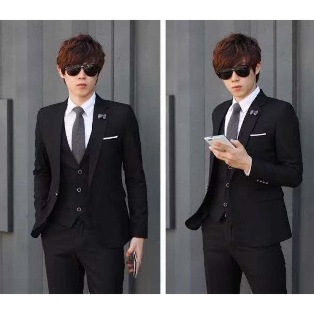 Jas Blazer Formal Casual Resmi Pria Dewasa Hitam kancing Satu Slim Fit Size XS - XXXX