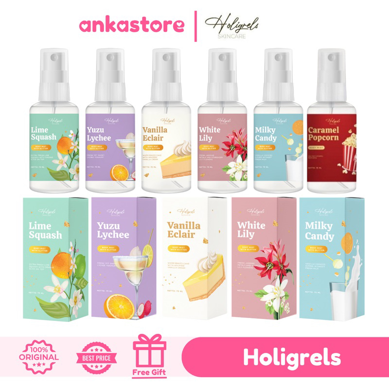 Holigrels Parfume Gant ung Body Mist dan Deo Spray Vanilla Popcorn Very Baby Strawberry