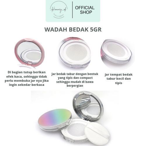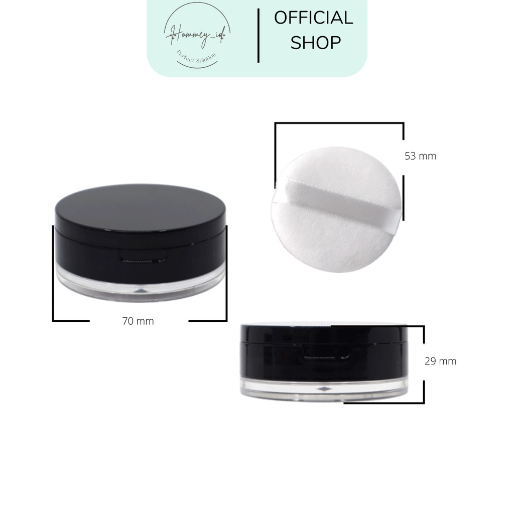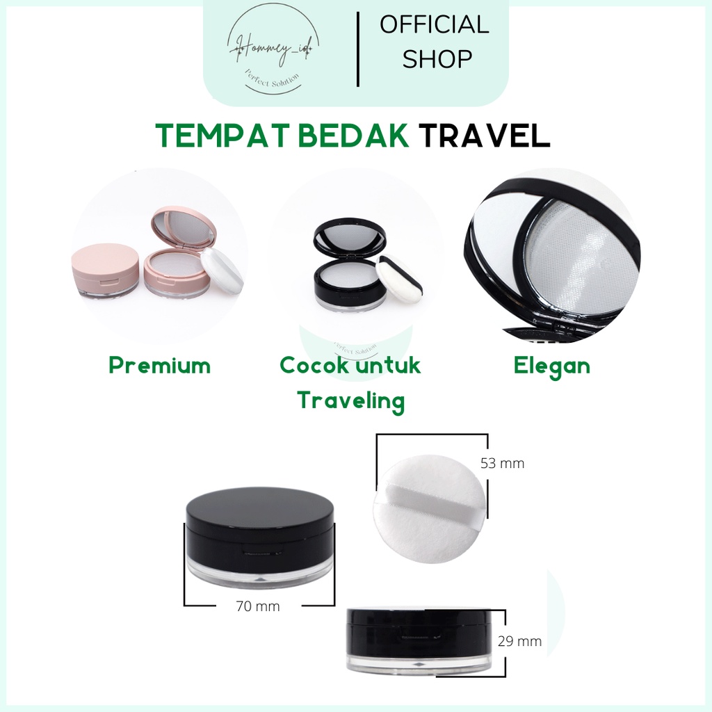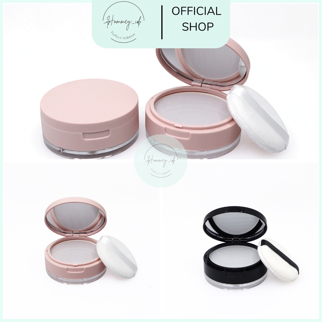 Hommey Id - Tempat Bedak Tabur Dengan Cermin | Tempat Loose Powder Free Sponge | Wadah Bedak Travel