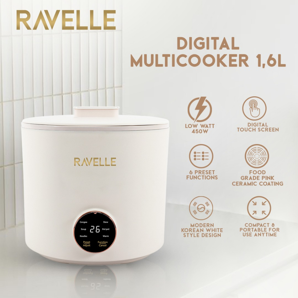 RAVELLE MULTICOOKER 1.6 LITER - PANCI KUKUSAN LISTRIK MULTIFUNGSI LOW WATT