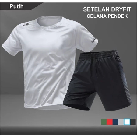 Setelan Kaos Running Dry Fit Kozzo Baju Olahraga dan Celana Pendek Lari Pria TANPA SAKU Gym Sport
