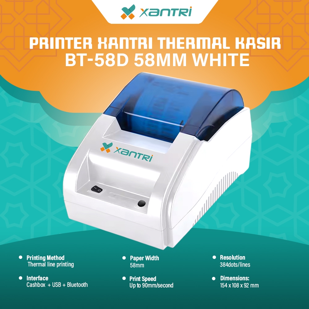 XANTRI BT-58D PUTIH PRINTER THERMAL 58MM UNTUK KASIR SUPPORT BLUETOOTH + USB