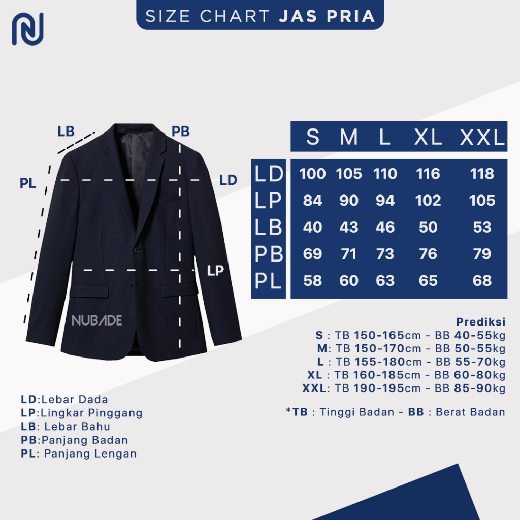 NUBADE - Jas Blazer Wisuda Pria Formal Polos Warna Hitam Navy