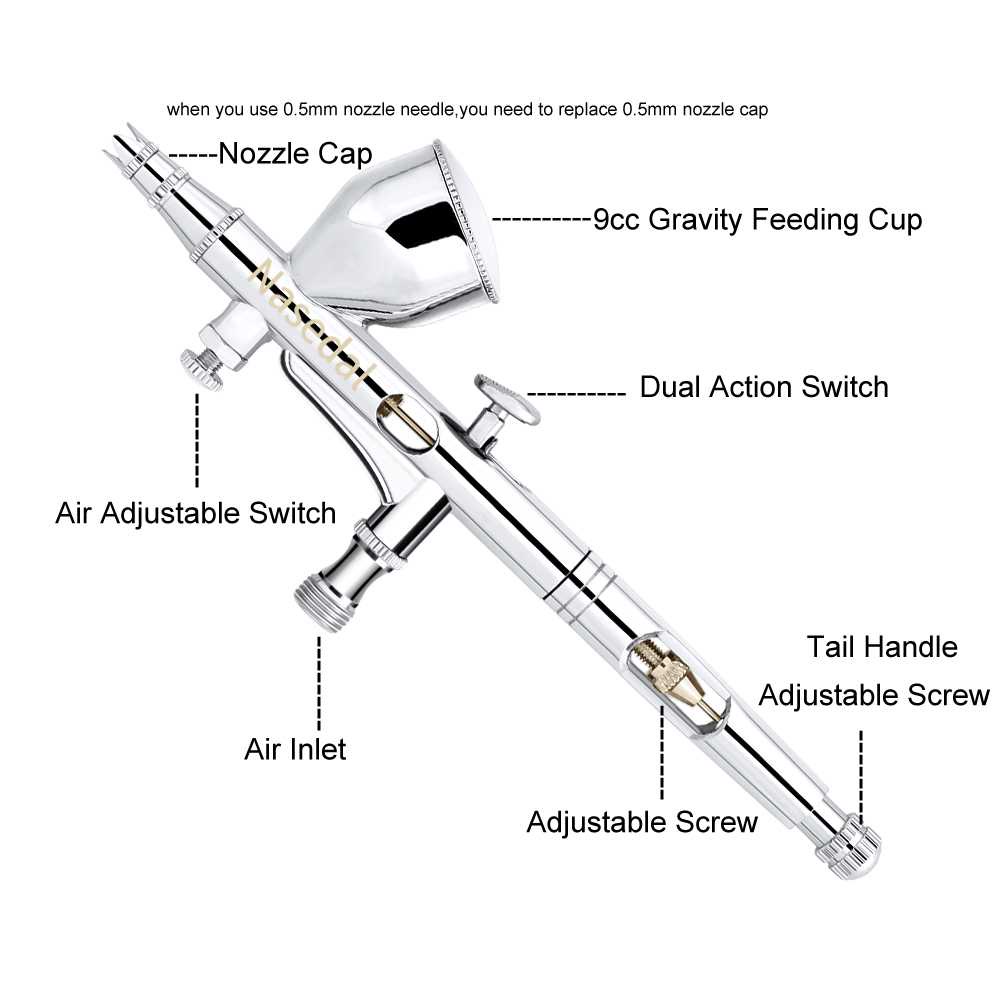 HSS TOOLS - Nasedal Mini Airbrush Spray Gun Gravity Tattoo Nail Art Painting - NT-180K-3