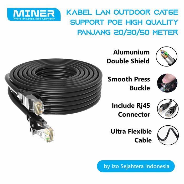 Kabel LAN Outdoor CAT6E Support POE High Quality Panjang 20/30/50 Meter