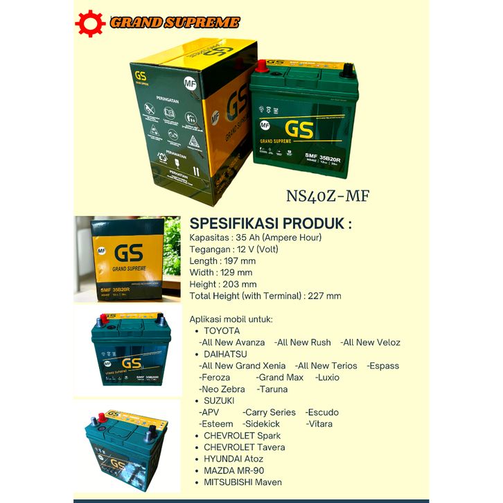 TERLARIS AKI MOBIL AVANZA GS GRAND SUPREME NS40ZR 12V-35AH Avanza Xenia Rush Grand Max Carry TERMURAH
