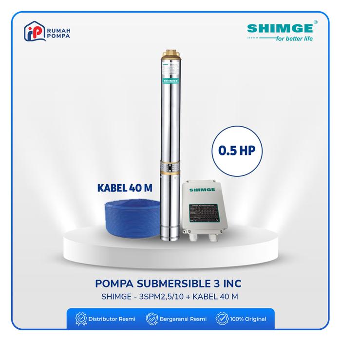Promo Pompa Submersible SHIMGE 3SPM25/10 3 Inc dengan Kabel 40 M untuk Sumur Dalam Keren