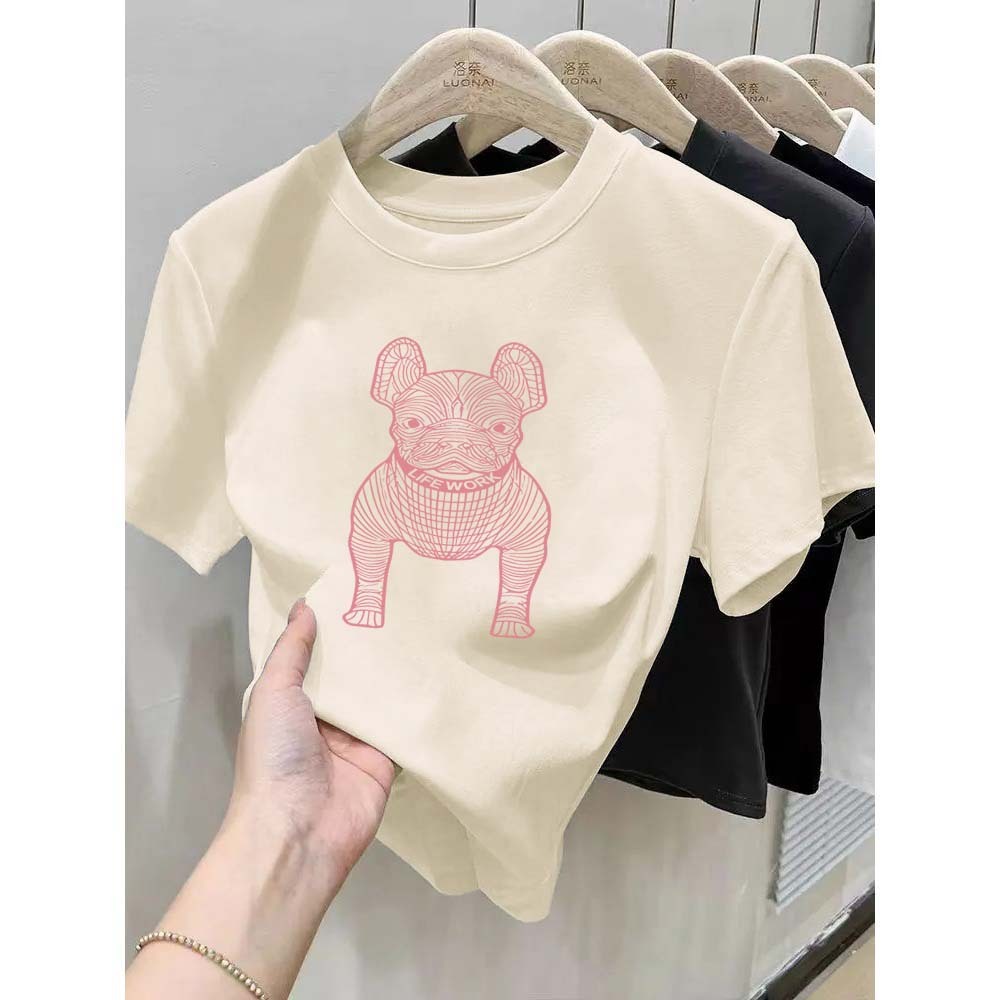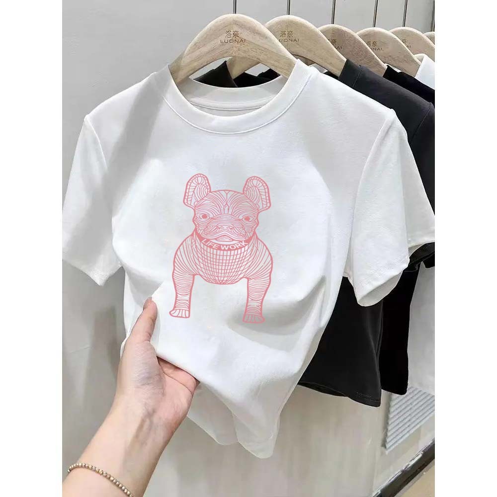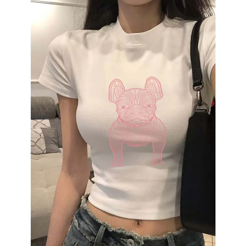Tt Toko Mode T-Shirt Crop Top Kaos Wanita Crop Top Korea Anak Anjing Merah Muda Yang Lucu Baju Atasan Wanita /Putih Crop