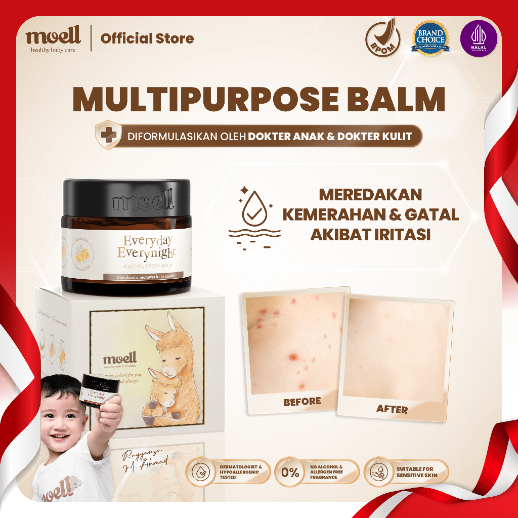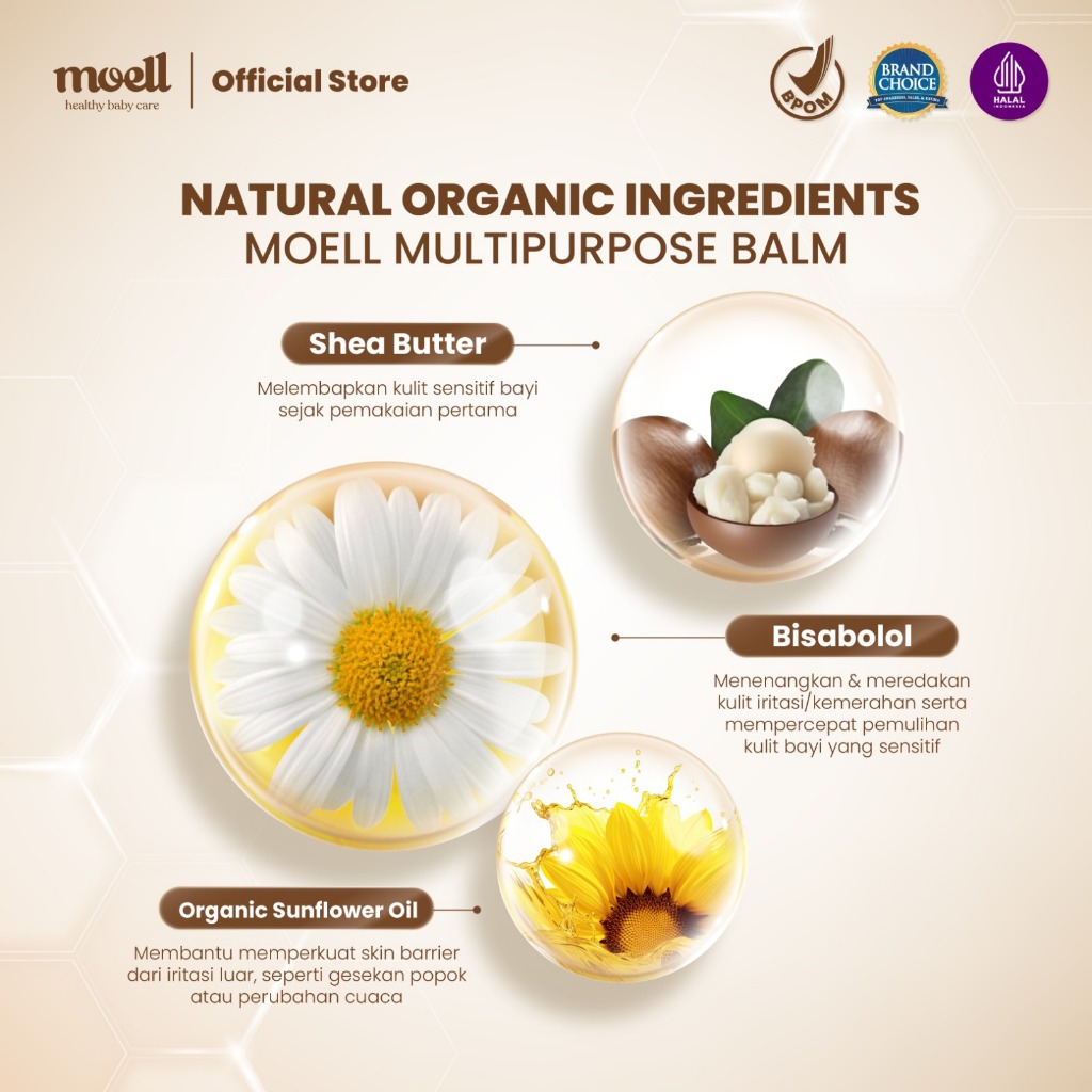 Moell Multipurpose Balm 30gr-Balm Multifungsi Bisabolol&Lavender-Menenangkan dan Meredakan Kemerahan,Ruam,Eksim-Kulit Se