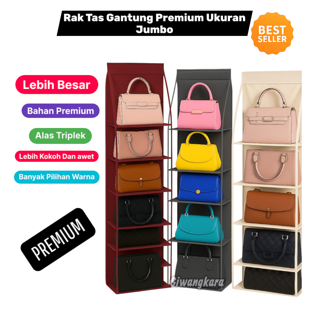 Rak Tas Gantung 6 Susun Polos Triplek Full Reseleting Ukuran Jumbo Dan Bahan Premium