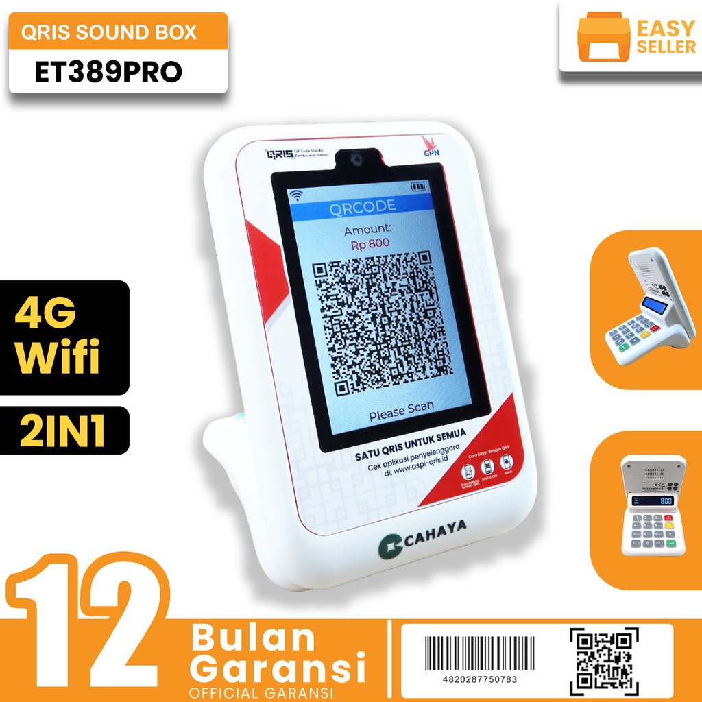 QRIS SOUNDBOX REALTIME CAHAYA - TRANSAKSI QRIS MASUK LEBIH AMAN LCD LAYAR 4G WIFI 2 IN 1 HUMAN VOICE EASYSELLER