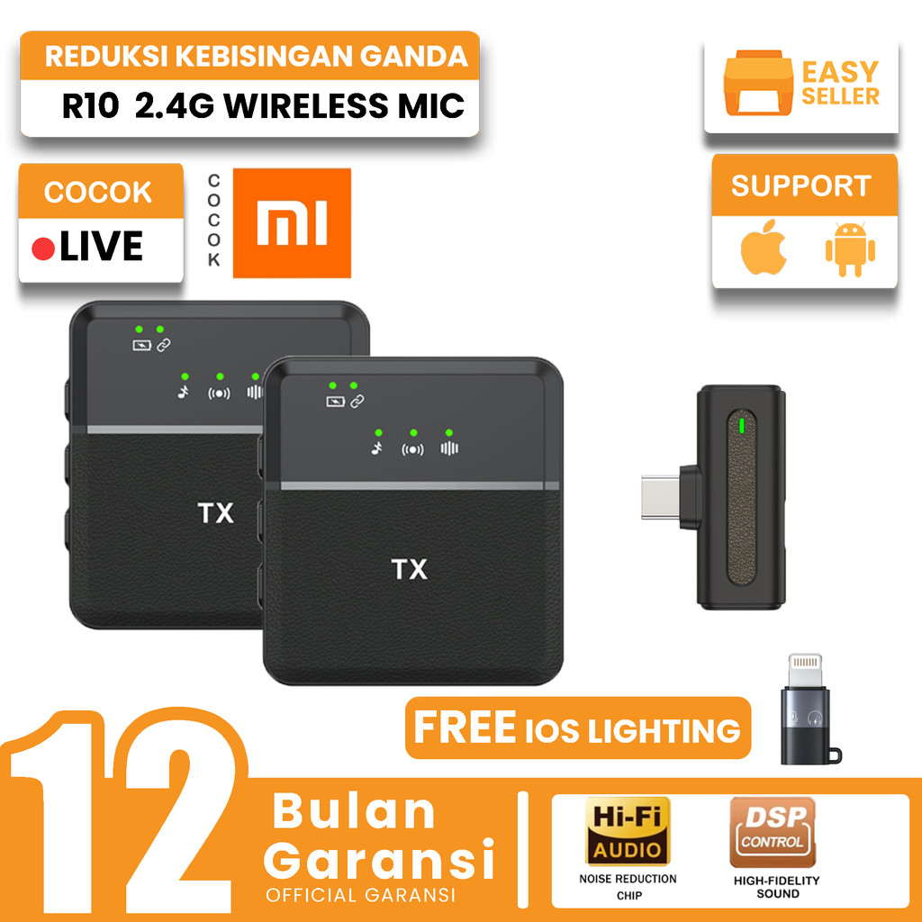 MICROPHONE PORTABLE 2.4G PROFESSIONAL WIRELESS MIKROFON LAVALIER MIC PLUG & PLAY FOR VLOG【EASYSELLER】