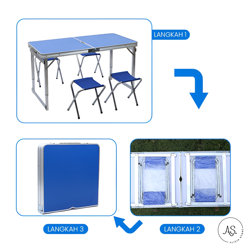 AS Meja Lipat Jualan Bentuk Koper Multifungsi Kaki Bulat/.Persegi + 2/4 Kursi