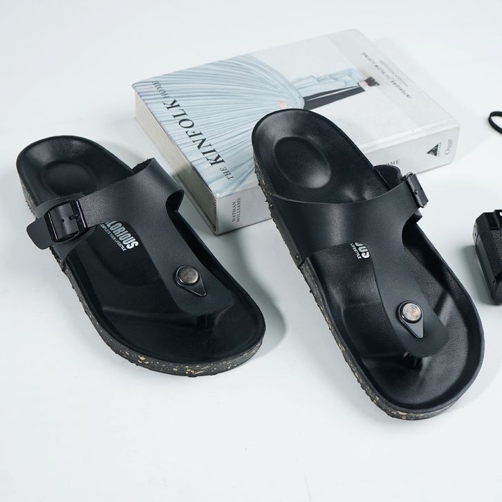 Sandal jepit kulit pria wanita formal kasual santai distro nyaman empuk GLORIOUS ZERO full black branded