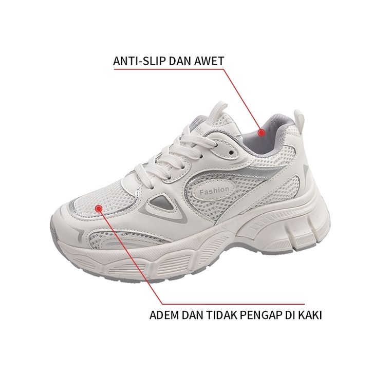VANSICO Sepatu Sneakers Olahraga Wanita Tali Casual Lari Badminton Joging Gym Empuk Ringan Running Shoes Papan Bawah Spo